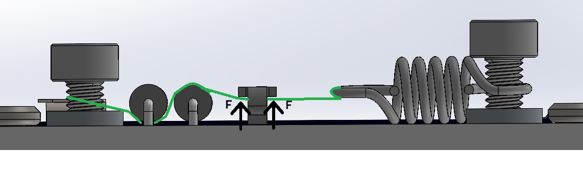 To survive the high-vibration environment of the launch vehicle, the system must remain under constant tension. This is achieved by the extension spring, which compensates for any mechanical tolerances and prevents the antenna from oscillating or "wiggling." This tension ensures that the tether remains correctly seated over the thermal knives until the deployment sequence is initiated by heating the resistors to the tether's melting point.